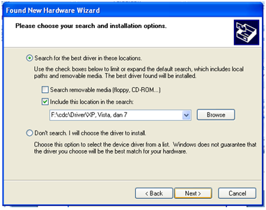 Klik tombol "Browse", arahkan ke CD driver software arduino , lalu arahkan ke folder Driver Arduino yang telah di download tadi.